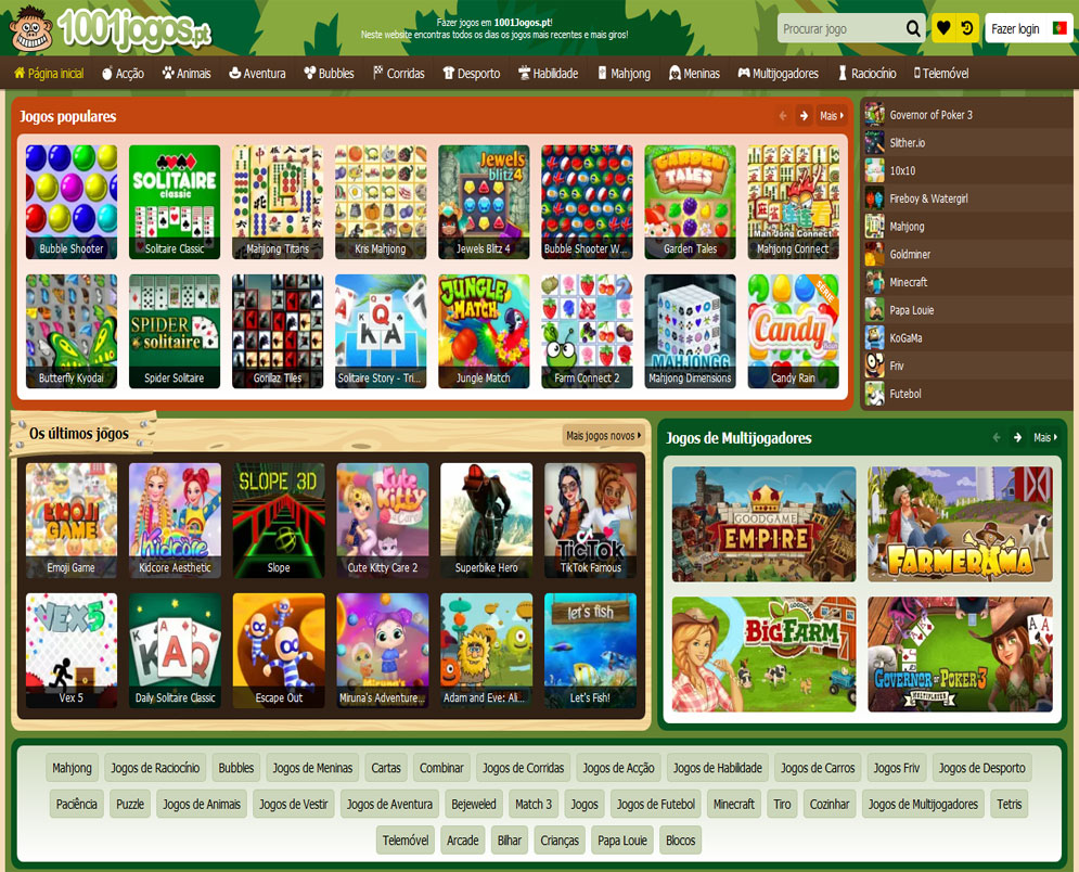 Este site de jogos online português, conta com games dos mais variados gêneros e em cada uma das categorias, conta com ao menos 50 jogos disponíveis. Entre as categorias temos ação, puzzles, aventura, esportes, jogos de casino e jogos multiplayer.