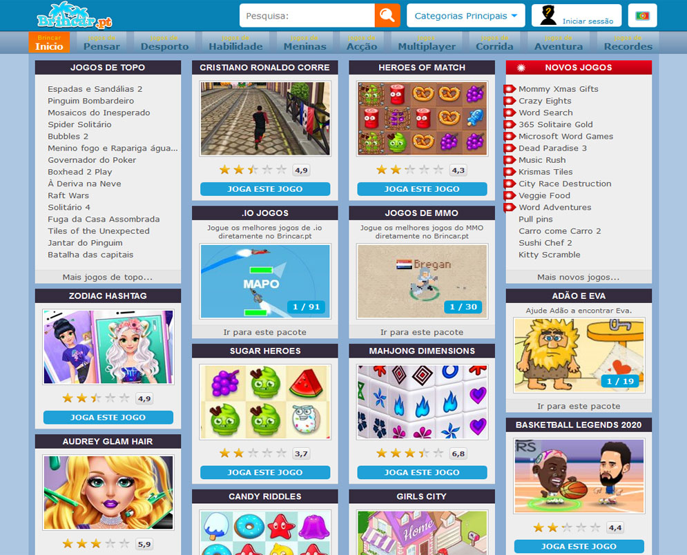 O Brincar é um site português de jogos online que apresenta uma interface bastante agradável e muito intuitiva. É muito fácil pesquisar jogos neste portal, uma vez que existe um campo de pesquisa que lhe permite encontrar os seus jogos preferidos.